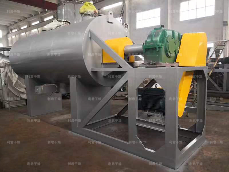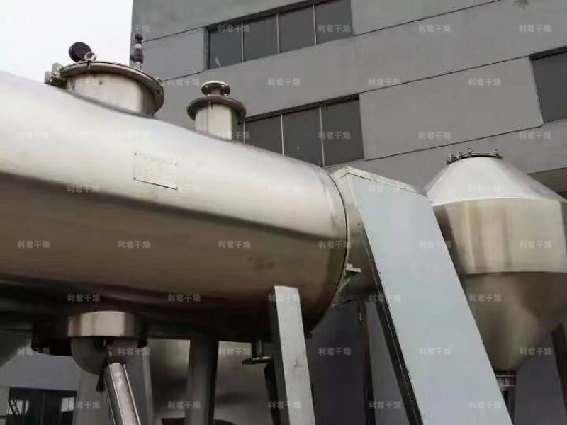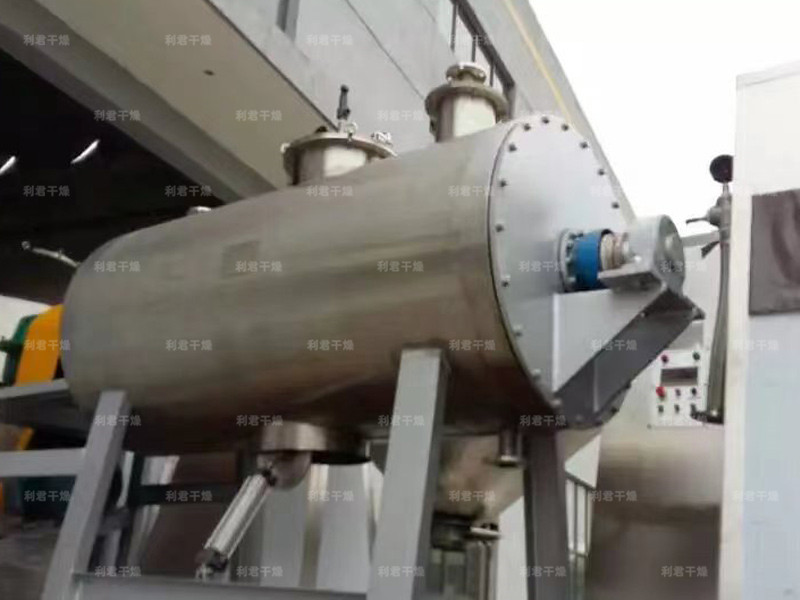 本機是一種新穎臥式間歇式真空干燥設備,濕物料經傳導蒸發,帶有刮板攪拌器不斷清除熱面上的物料,并在容器內推移形成循環流,水份蒸發后由真空泵抽出。