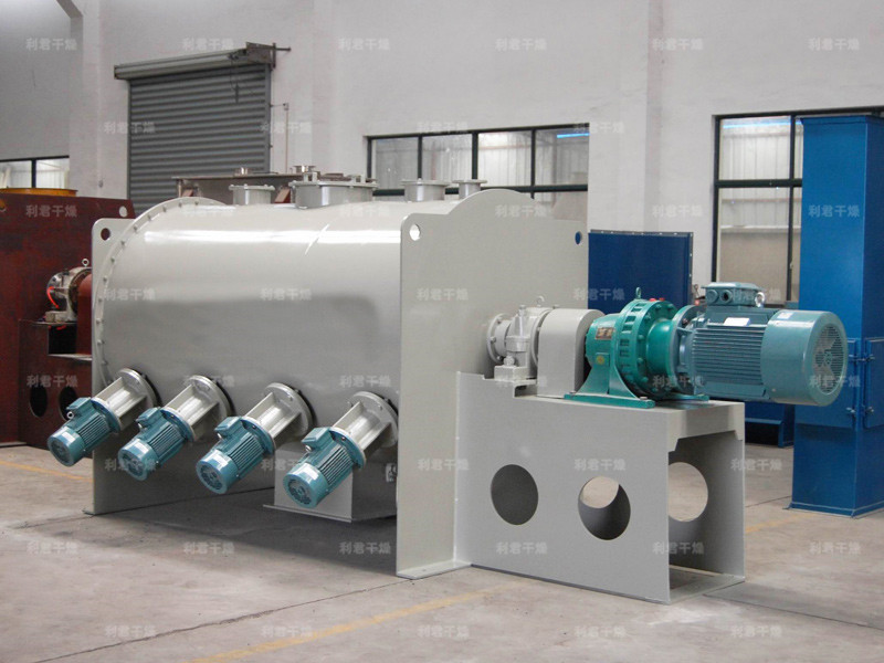 該機型由傳動機構、臥式筒體、犁刀、飛刀四部分組成,物料在犁刀作用下沿筒壁作軸向流支,當物料流經飛刀時被高速度旋轉的飛刀拋灑,從而在較短時間內達到均勻混合。