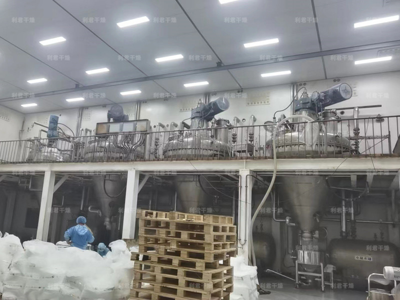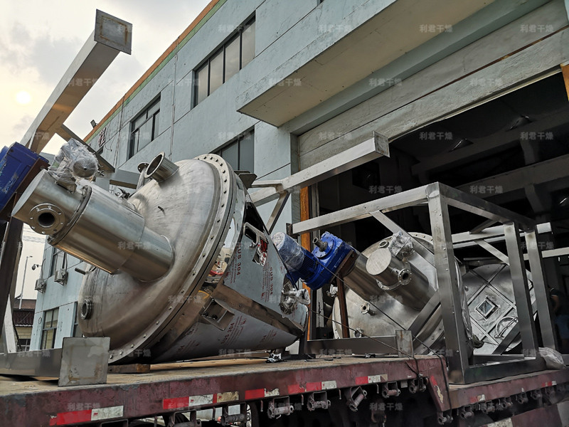 ●干燥階段:濾餅脫水后,通過回轉使濾餅疏松,同時,夾套內蒸汽對內壁進行加熱,通過熱傳導對濾餅進行加熱升溫,濕份迅速蒸發達到干燥的效果。通過設備內抽真空的方法加快蒸發速度。通過加入處理后的熱氮氣等介質帶走蒸發的濕份,可加速物料的干燥,提高干燥效果。